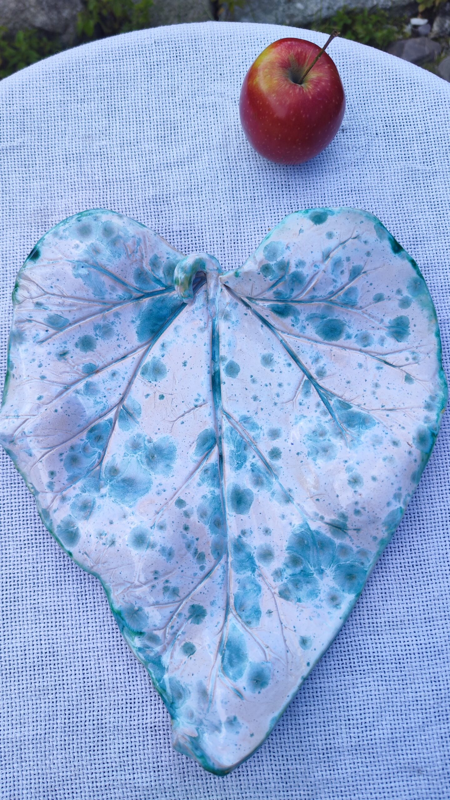 W sercu warsztatu, gdzie czas płynie wolniej, a dłonie artysty z czułością kształtują materię, narodził się ten wyjątkowy półmisek. Jego wymiary, 29 x 34 cm, są niczym płótno, na którym natura i sztuka splatają się w harmonijnym tańcu.